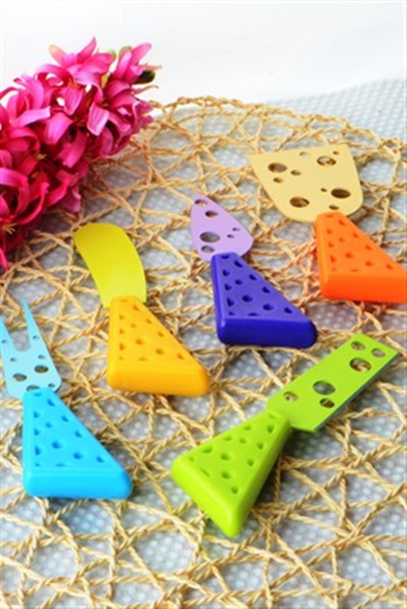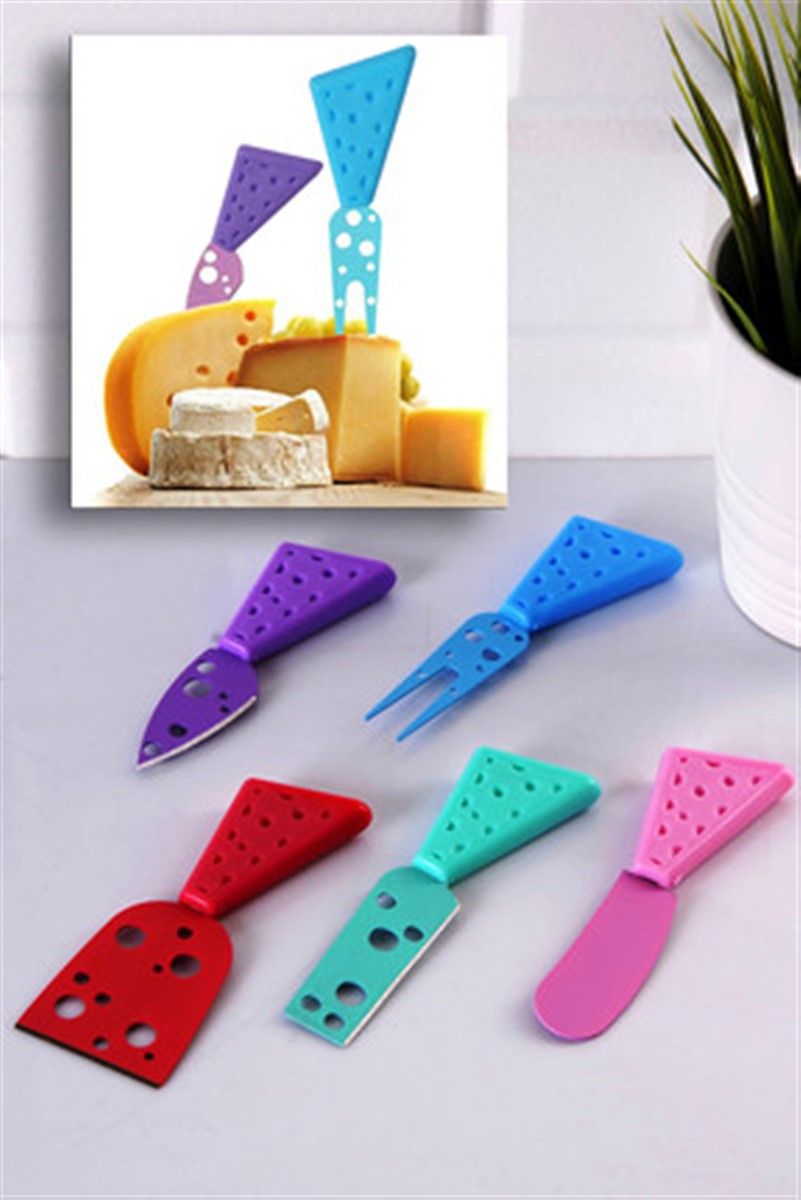 5 Parça Renkli Delikli Peynir Bıçak Spatula Çatal Seti