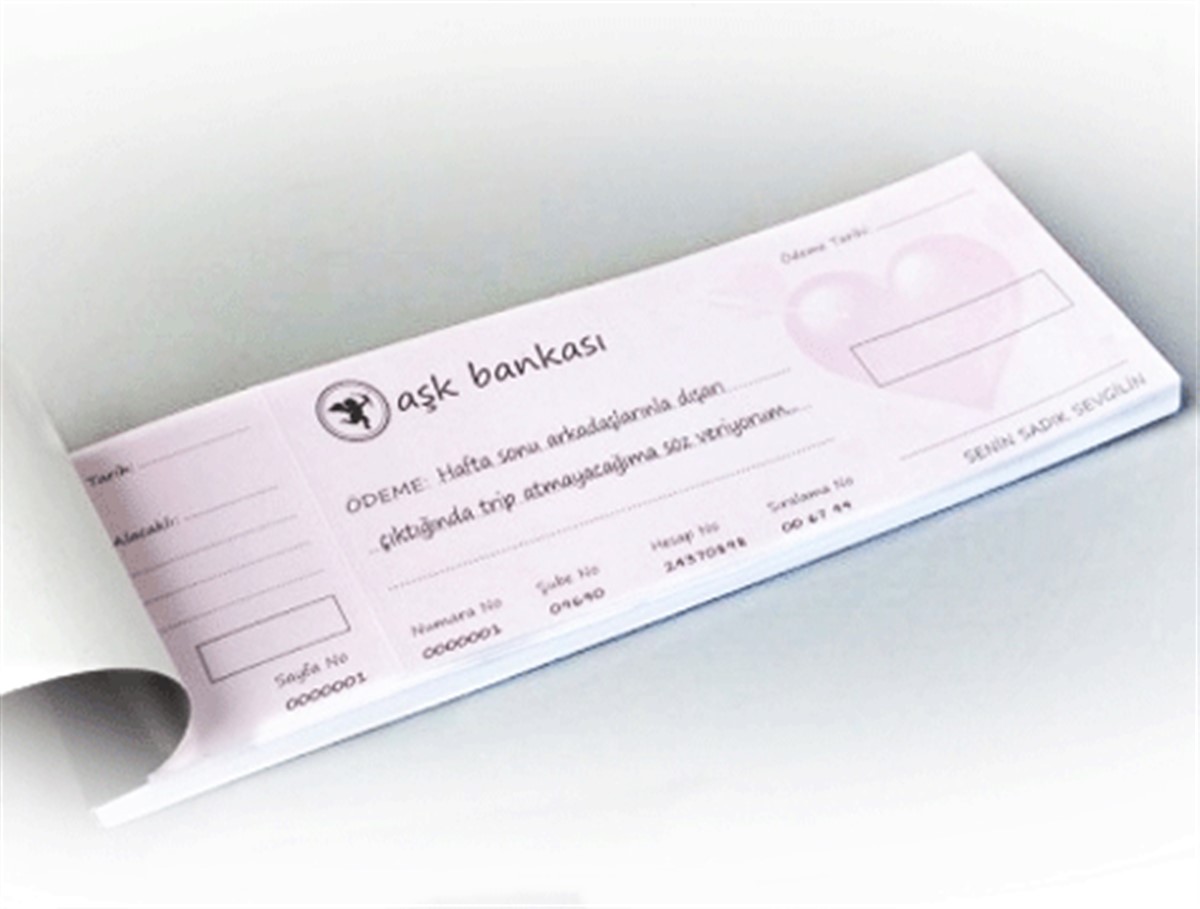 Eros Bankası’ndan onaylı Aşk Çeki, sevgilinizle karşılıklı verdiğiniz sözleri garanti altına alıyor. Örneğin güzel bir sırt masajı, televizyonsuz bir akşam ya da birlikte futbol maçı izleme sözü. Elinizde kapı gibi çekiniz olduğu için iki taraf da verilen sözlerden kaytaramayacak.