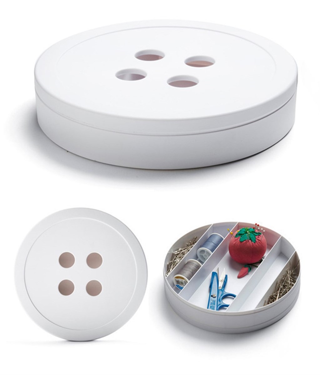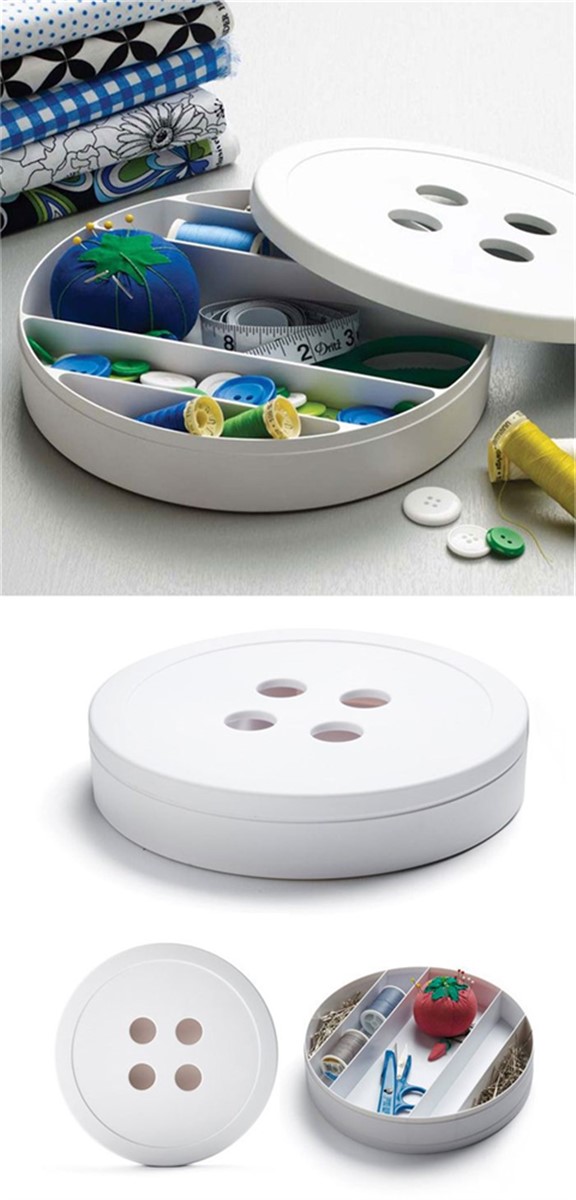 Her türlü takı, dikiş, kırtasiye ürünlerinizi içerisinde saklayabileceğiniz ve şık tasarımı ile evlerinizde mutlaka bulunduracağınız Düğme Tasarımlı 5 Bölmeli Kapaklı Dikiş Kutusu.
