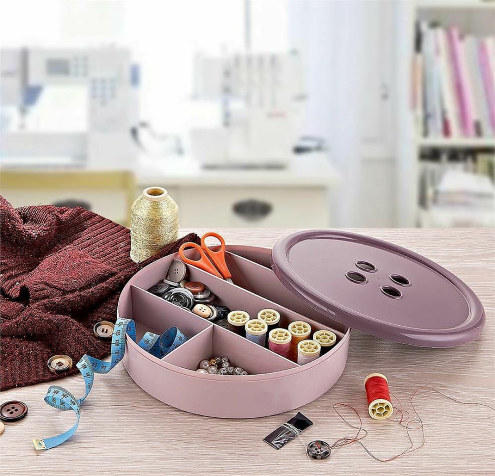 Düğme Tasarımlı 5 Bölmeli Kapaklı Dikiş Kutusu Asorti