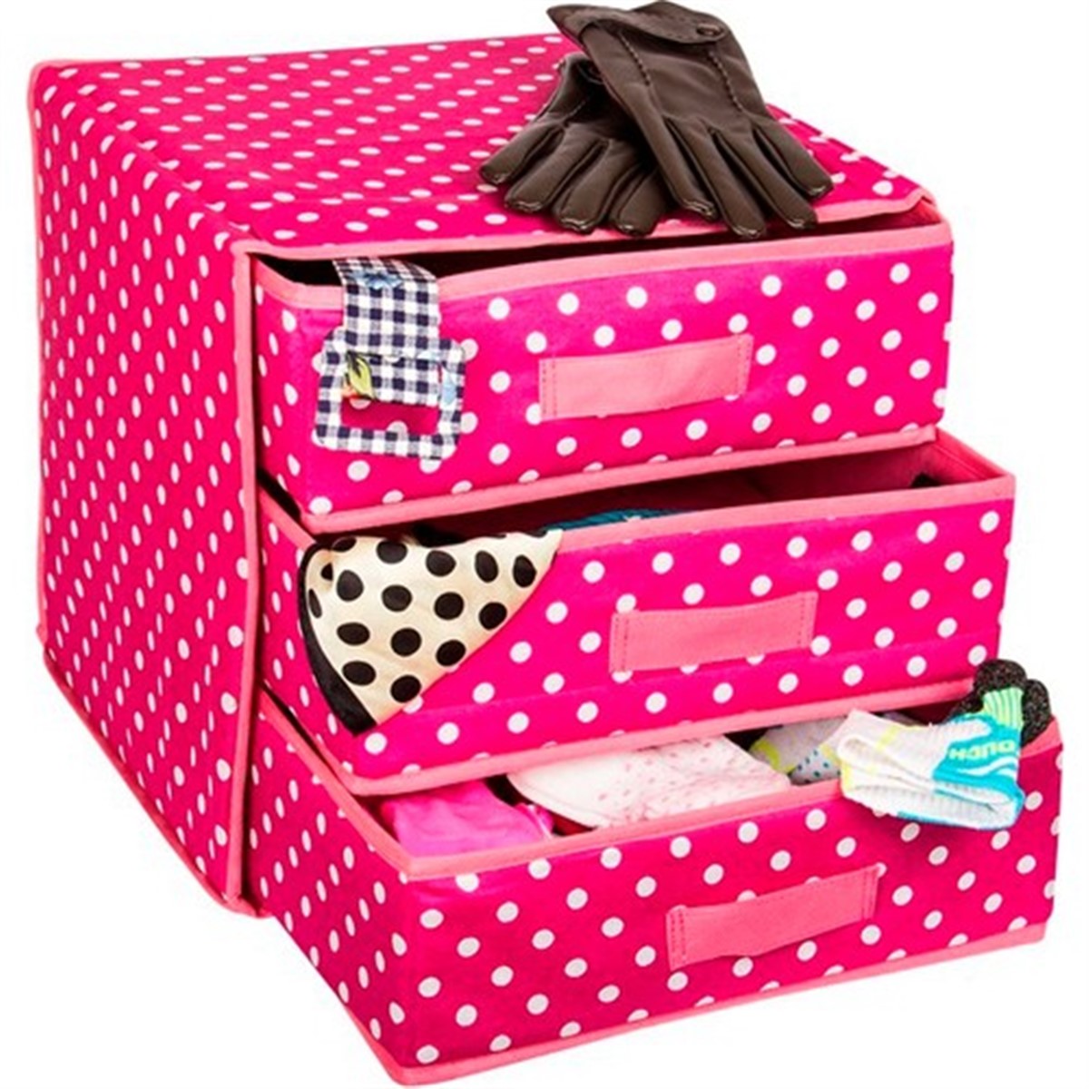 Katlanabilir 3 Bölmeli Bez Çekmece ister makyaj malzemeleriniz, ister özel eşyalarınız ve dağınıklığa sebep olan tüm ıvır zıvır eşyalarınız için kullanabileceğiniz pratik bir üründür.