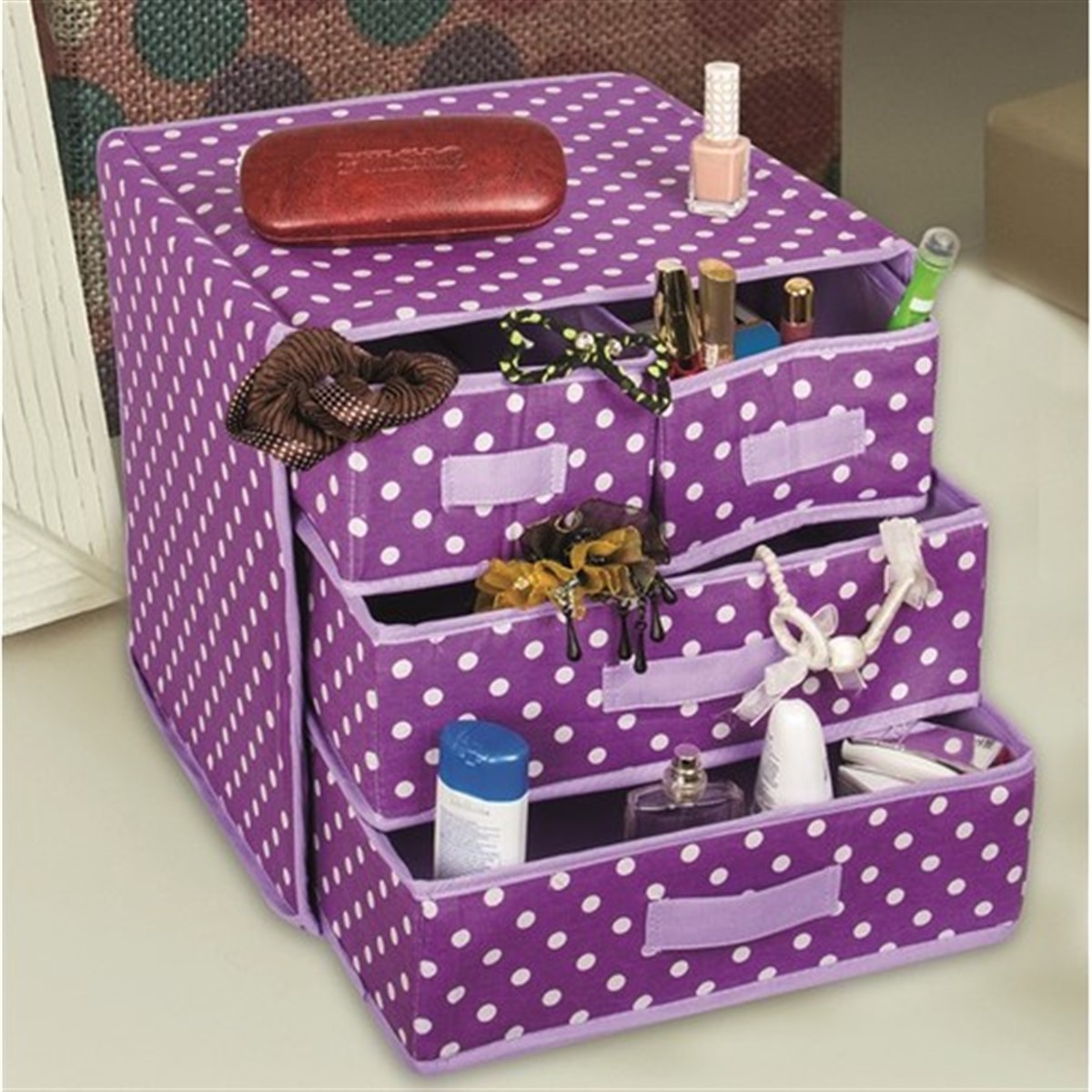 Katlanabilir 3 Katlı 4 Bölmeli Bez Çekmece ister makyaj malzemeleriniz, ister özel eşyalarınız ve dağınıklığa sebep olan tüm ıvır zıvır eşyalarınız için kullanabileceğiniz pratik bir üründür.