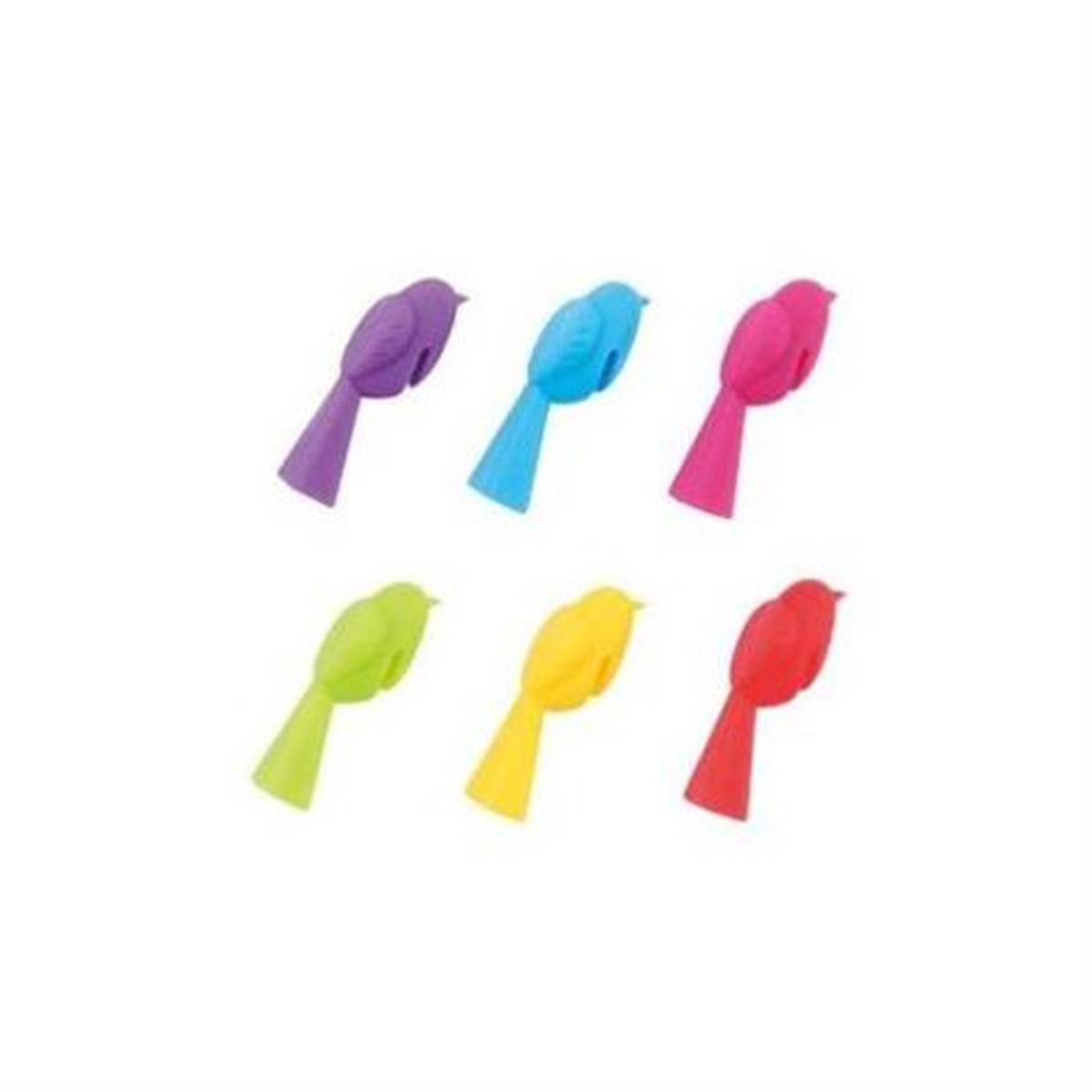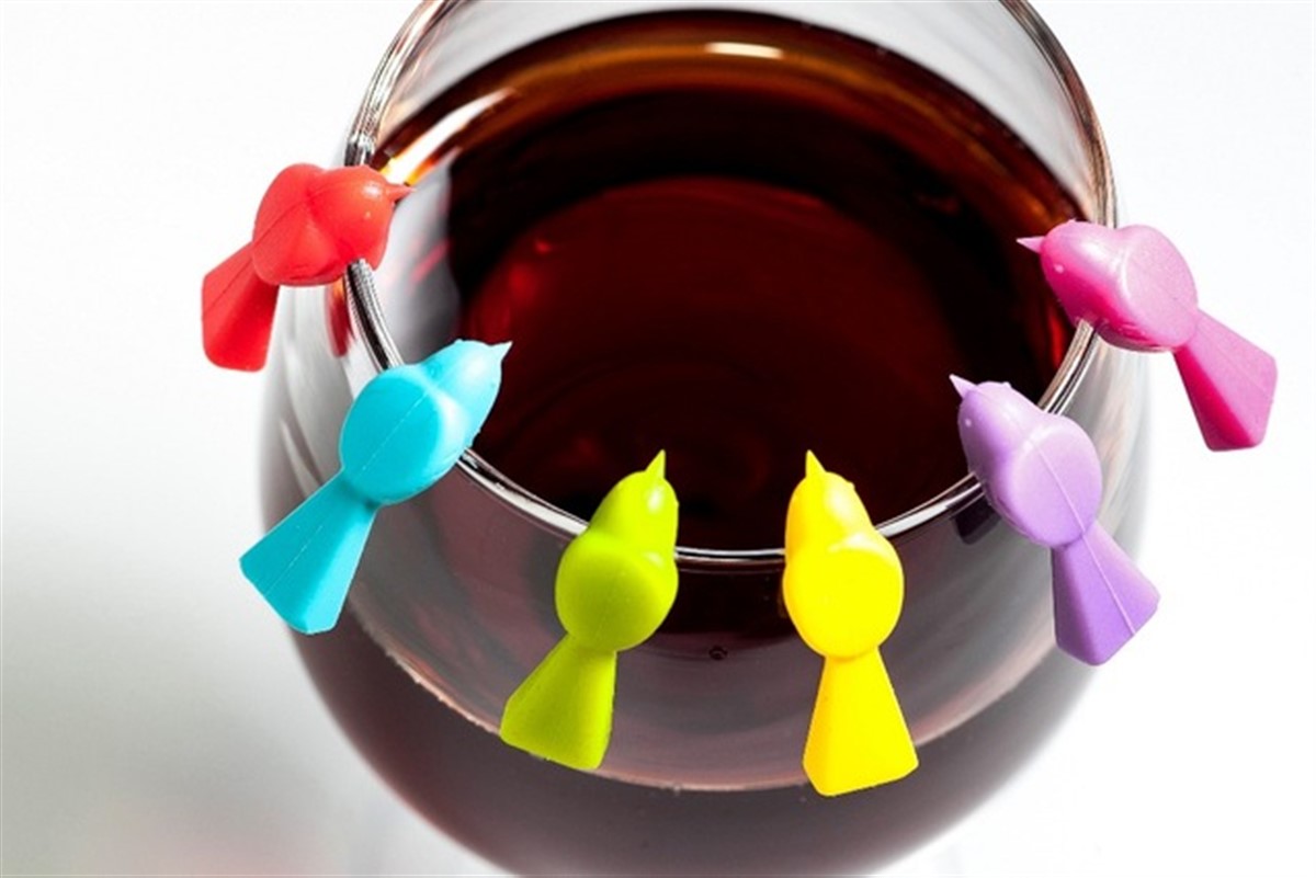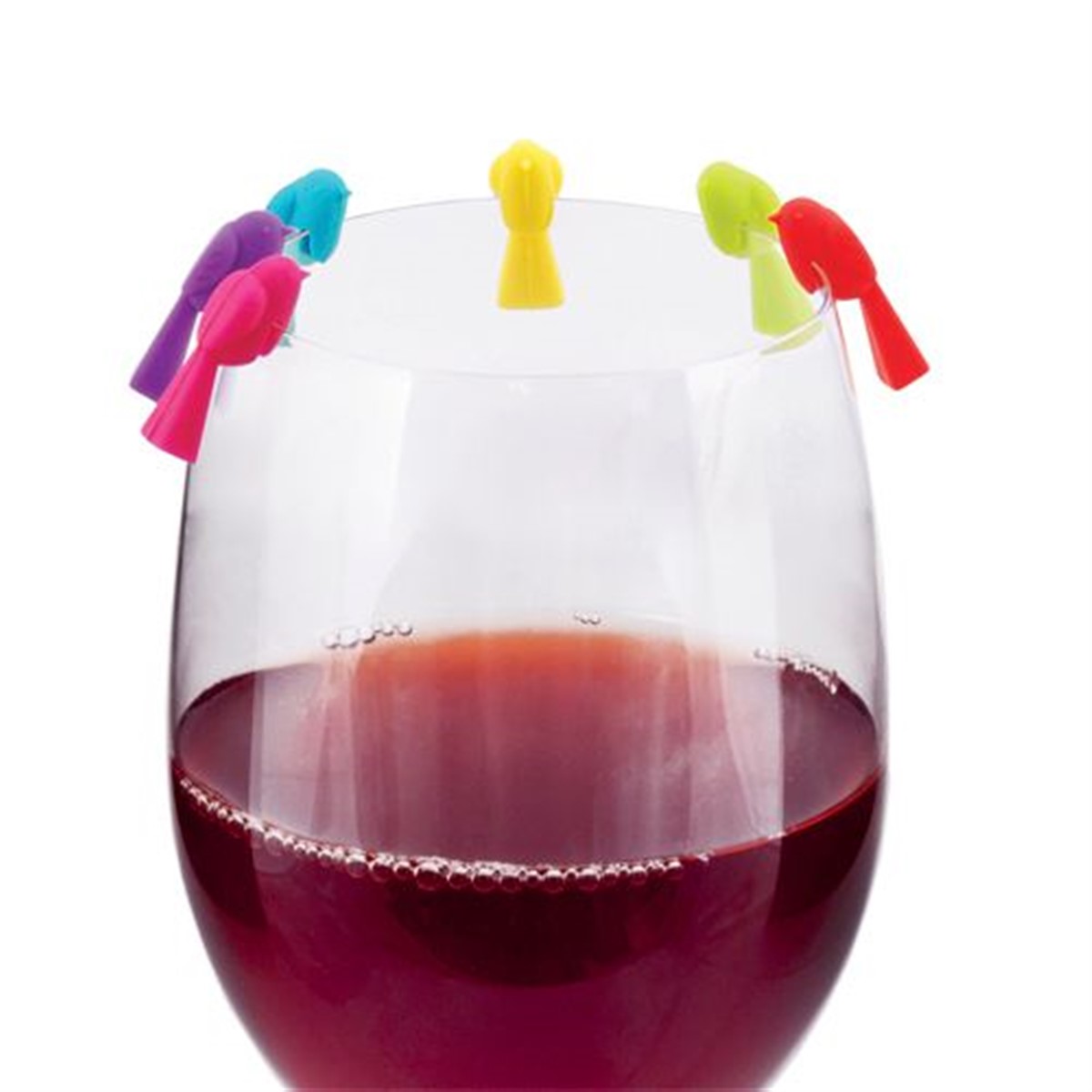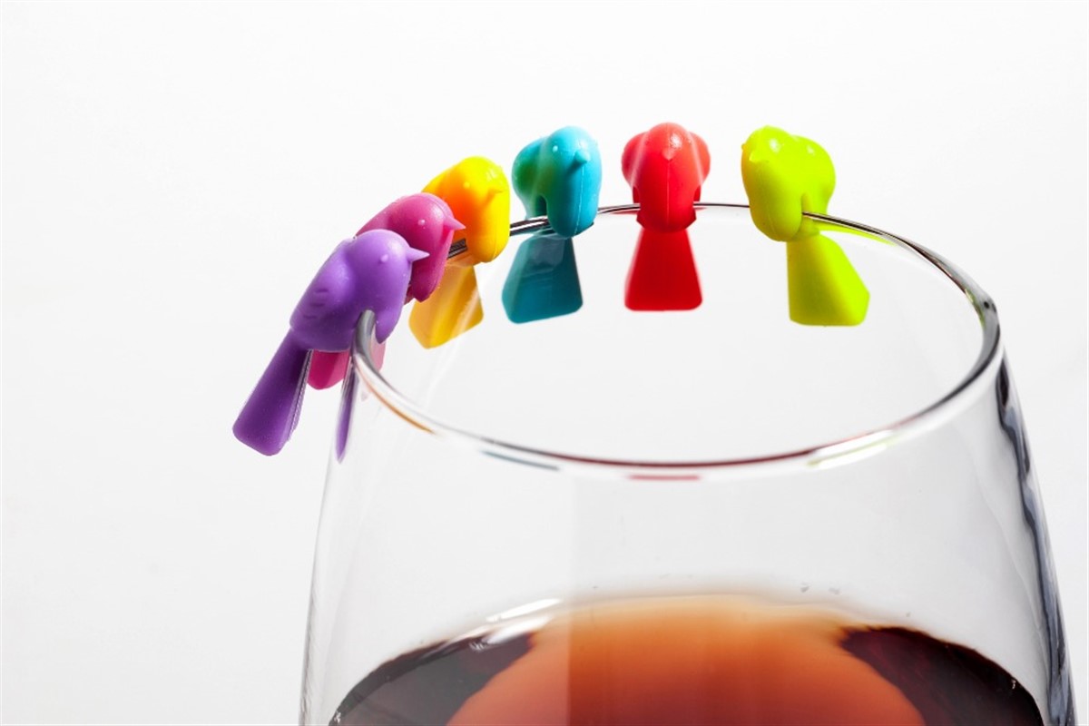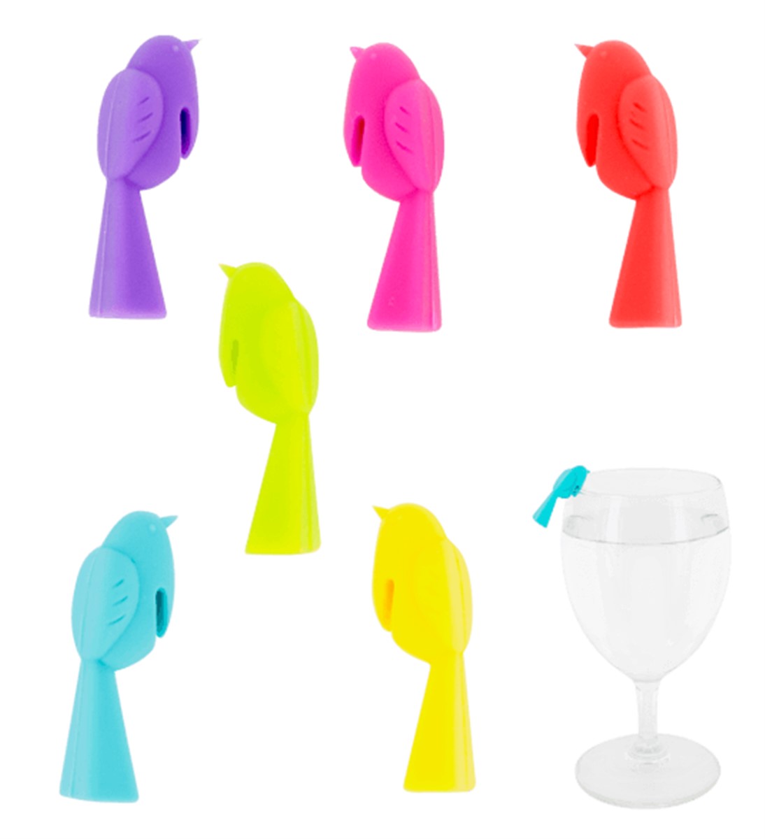 Rengarenk Silikon Kuşlu Bardak Ayırıcı İşaretleyici 6 lı Set