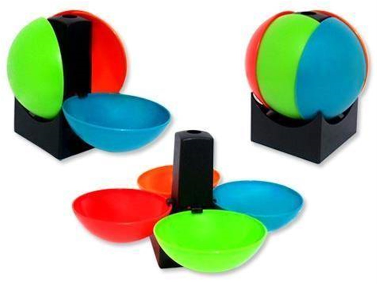 İlk bakışta topu anımsatan bu ürün yaprakları açıldığında yonca şeklinde 4 tabaklı bir servis aparatı oluyor.