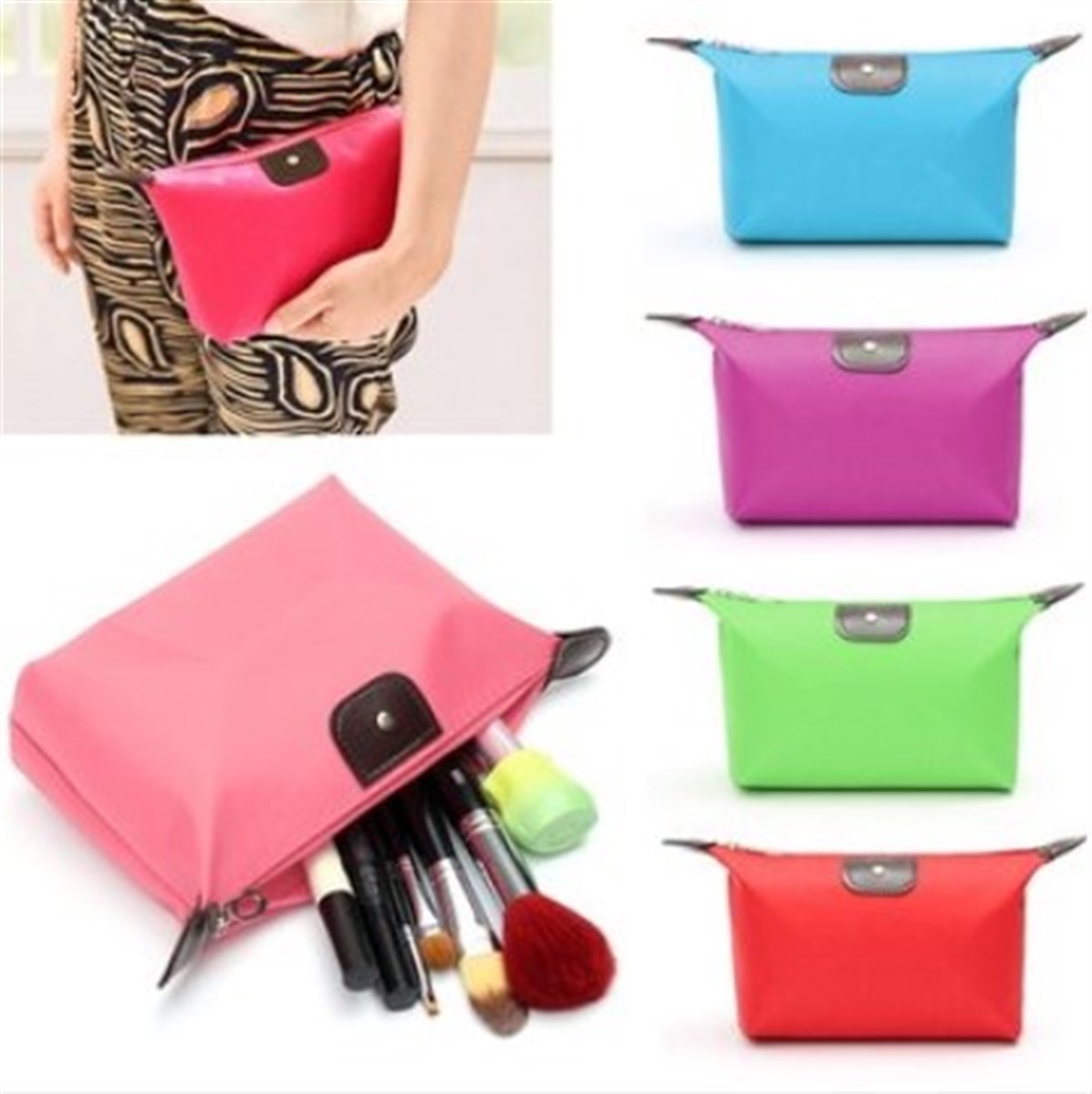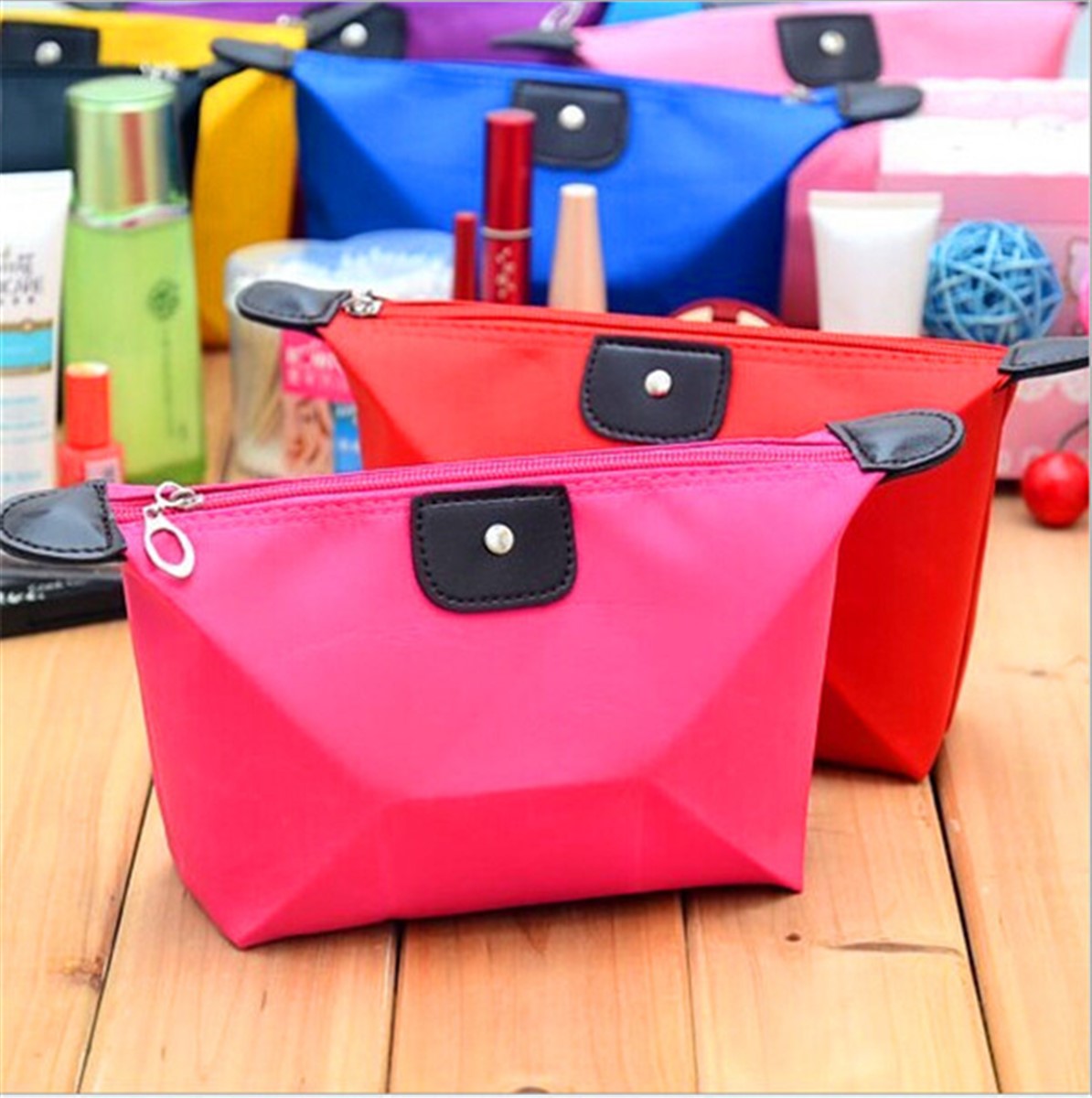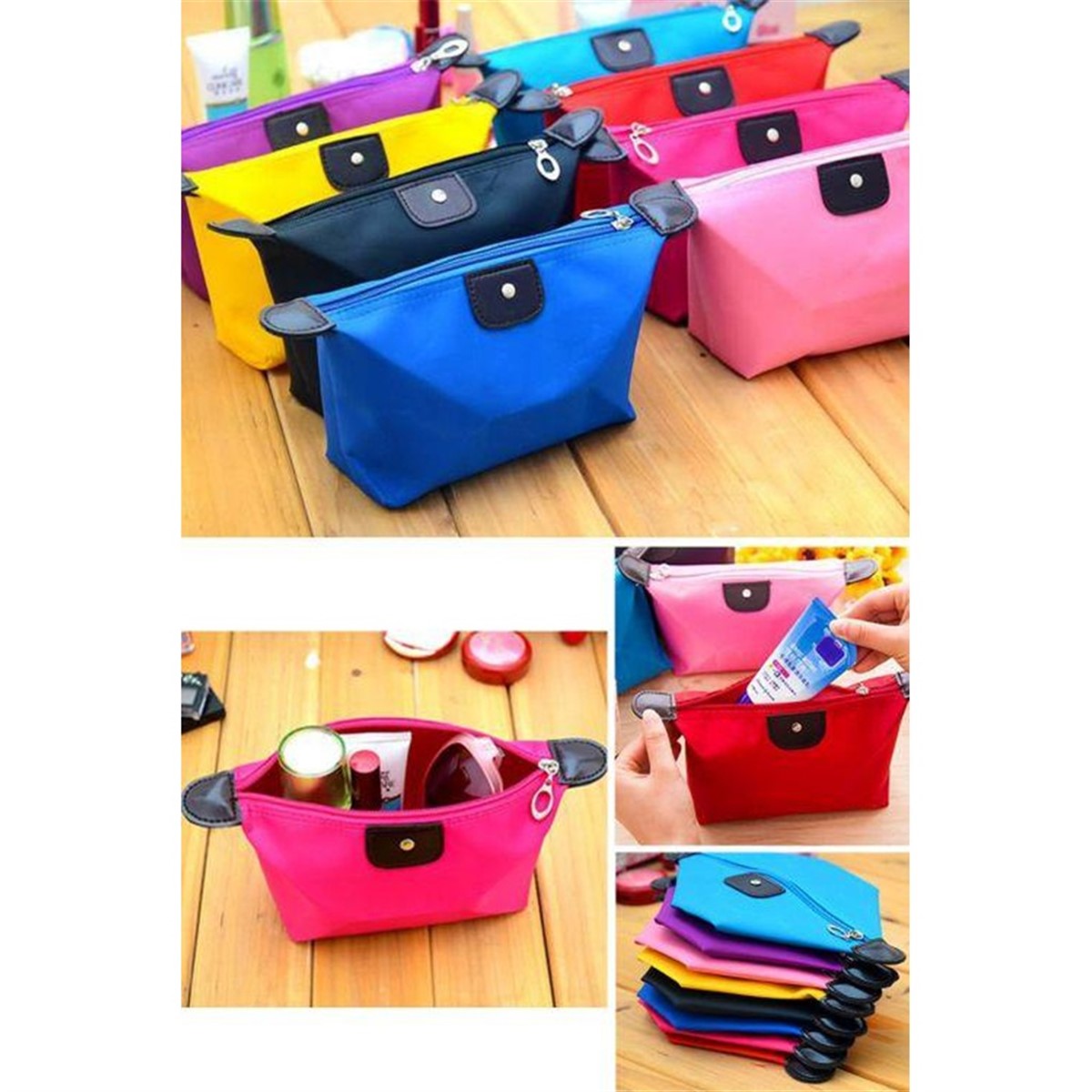 Su Geçirmez Kumaş Katlanabilir Makyaj Ürünleri Çantası Asorti.